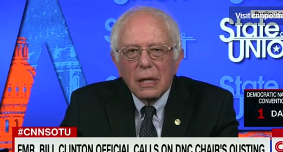 "I asked and demanded Debbie Wasserman Schultz resignation many, many months ago -- and I state that again," Sanders said on CNN. "I don't think she is qualified to be the chair of the DNC, not only for these awful emails which revealed the prejudice of the DNC, but also because we need a party who reaches out to working young people and I don't think her leadership style is doing that."