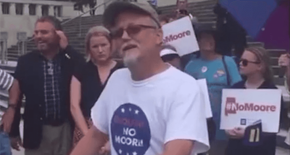 Speaking at a rally for anti-LGBT Alabama Chief Justice Roy Moore, a grieving Dr. Paul Hard was heckled by a Christian protester who laughed at him as he grieved the loss of his husband.