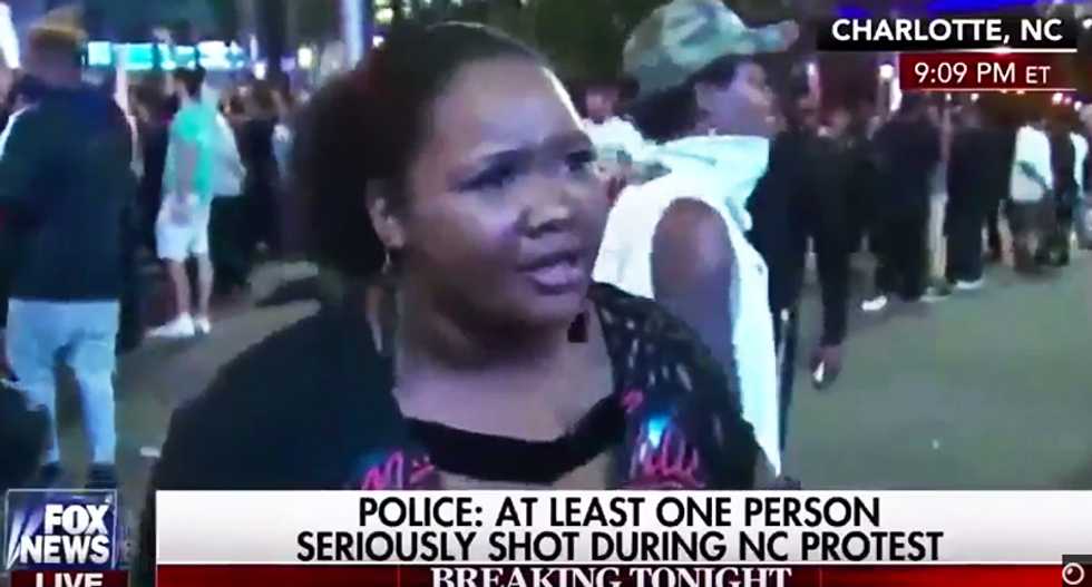 A protester out on the streets of Charlotte on Wednesday night to draw attention to the shooting of Keith Scott ran into a local Fox reporter who questioned why she felt it was important to put herself in danger as police and fellow protesters faced off with each other.