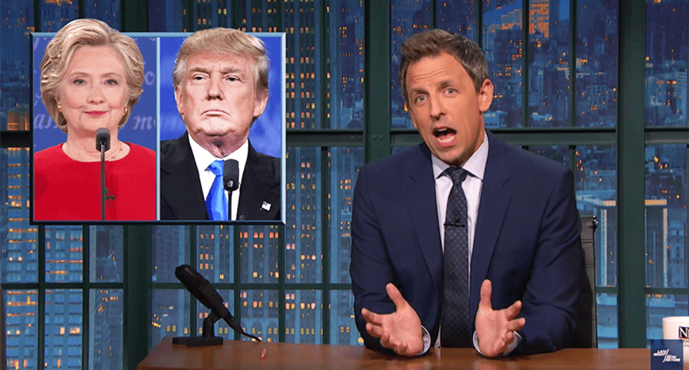 But while Trump might have been dramatically underprepared, according to "Meet the Press" host Chuck Todd, Clinton was apparently “over-prepared." Meyers agreed, claiming that Clinton's "patented lukewarm zingers" that fell about as flat as Sully Sullenberger's plane in the Hudson.