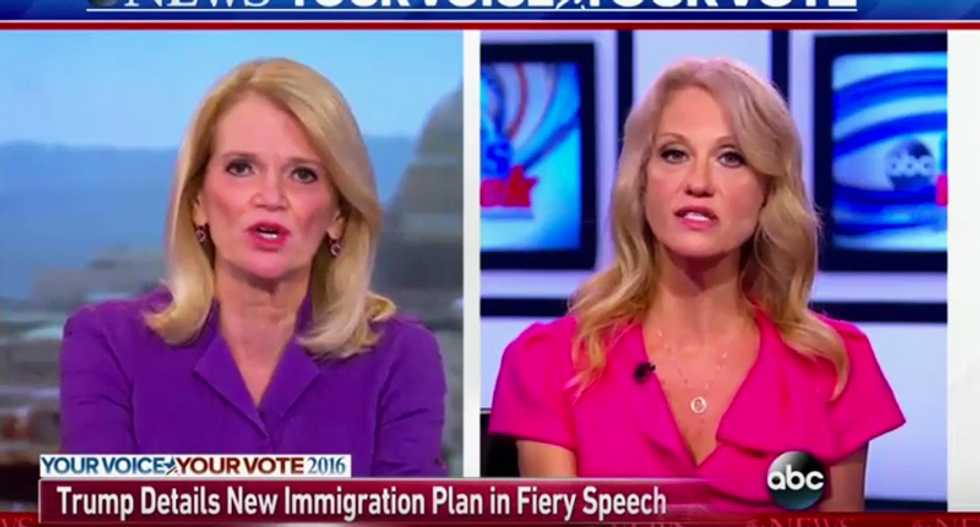 "He has said that you should stand in line and immigrate legally," Conway replied. "And also he has said that once we do things that have never been done --"