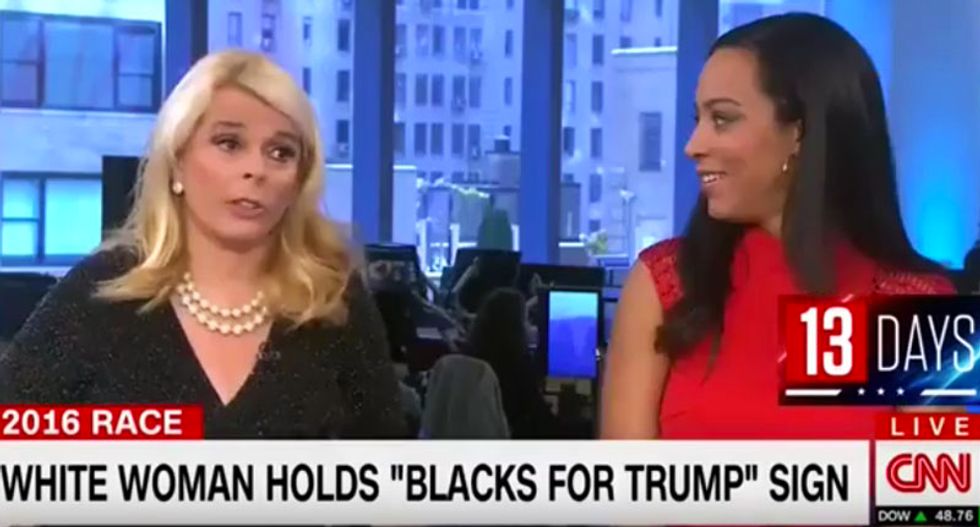 Appearing on CNN, the Trump advocate attempted to explain why a white women was holding a "Blacks for Trump" at a recent rally was a good sign for Trump -- as CNN commentator Angela Rye sat back and laughed.