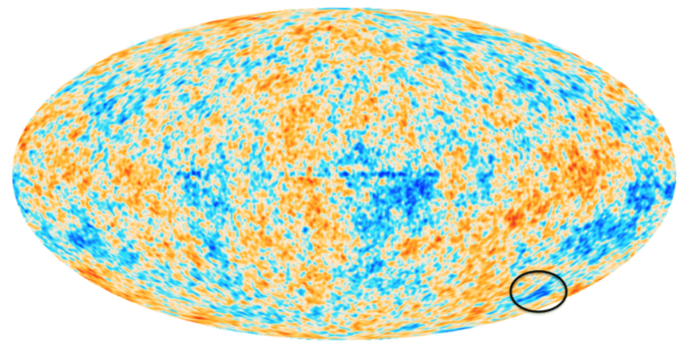 But in resolving one problem, however, we have reopened another – to do with a very large and unusual “cold spot” in Planck’s map of the cosmic microwave background. This spot was first noticed in 2004, and its physical origin has been a puzzle, since the odds of such a large and cold region appearing in the sky by random chance are small.