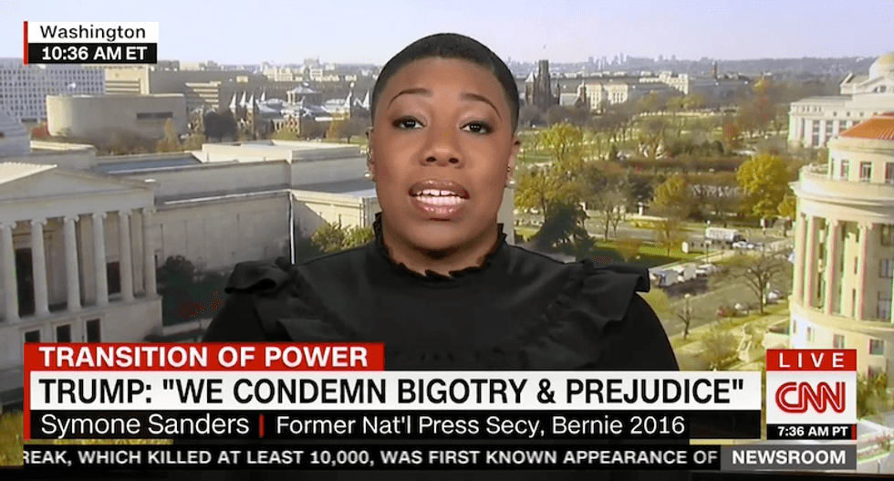 Political commentator and former Bernie Sanders staffer Symone Sanders addressed this same question on CNN with host Carol Costello, and fellow commentators Tara Setmayer and Scottie Nell Hughes.