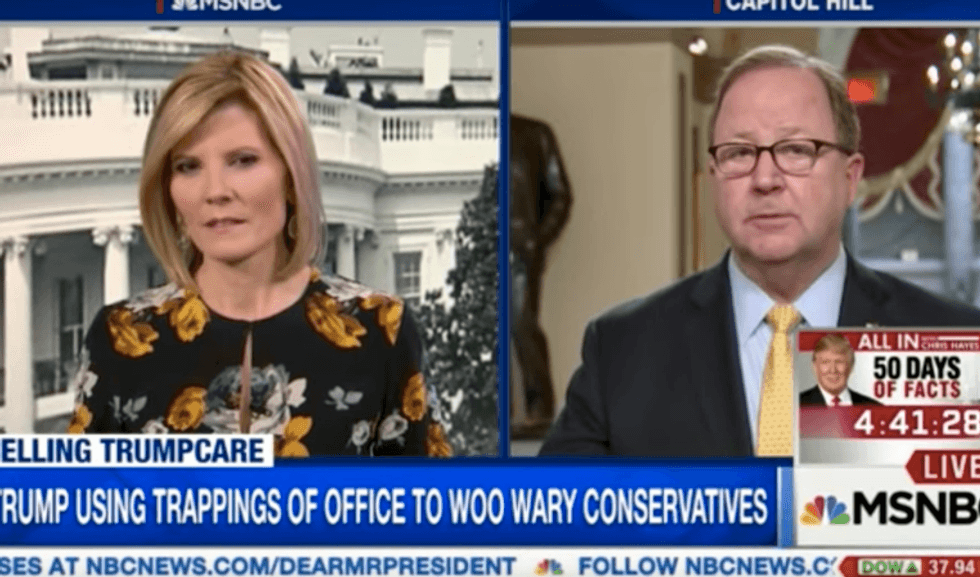 Texas Republican Rep. Bill Flores appeared on MSNBC on Friday to discuss the GOP's push to repeal and replace the Affordable Care Act. Host Kate Snow questioned Flores about a recent feud between Rep. John Shimkus (R-IL) and Rep. Mike Doyle (D-PA) over whether prenatal care should be covered.