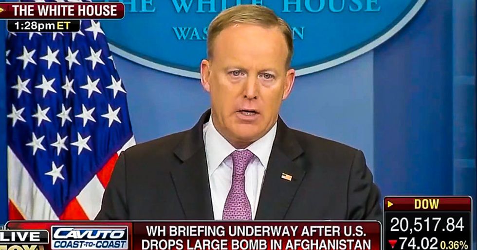 "The U.S. has dropped the largest non-nuclear bomb in Afghanistan," Spicer said, before noting that the United Nations Security Council had voted against a measure to condemn Syria for the use of chemical weapons.