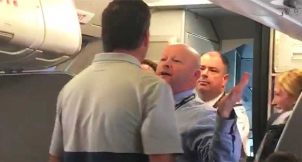 A man wearing an American Airlines uniform boards the plane and is confronted by a male passenger who admonishes him, “you do that to me and I’ll knock you flat, ” before being told to "stay out of it," adding, "Try it. Hit me. You don’t know what the story is.”