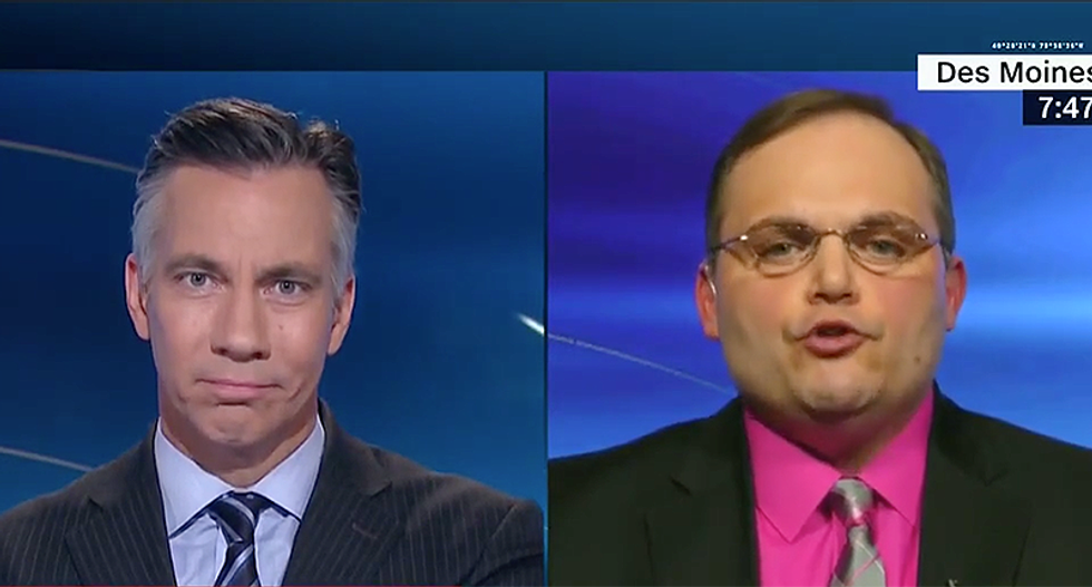 "It's a little bit like talking to that crazy Jehovah's Witness at your door that bothers you at 7:00 a.m. Saturday morning, you know?" he continued. "They just sort of blink three times and you point out that you believe it's a scam and they go through their talking points. And that's exactly what you see from Trump's cult. As you watch this thing unravel, he sort of becomes Chris Christie-style Republican, moderate to liberal east coast Republican, which is what he probably what he is to begin with. You really wonder, writing off of his exhaust, you do won't where this is going to end."