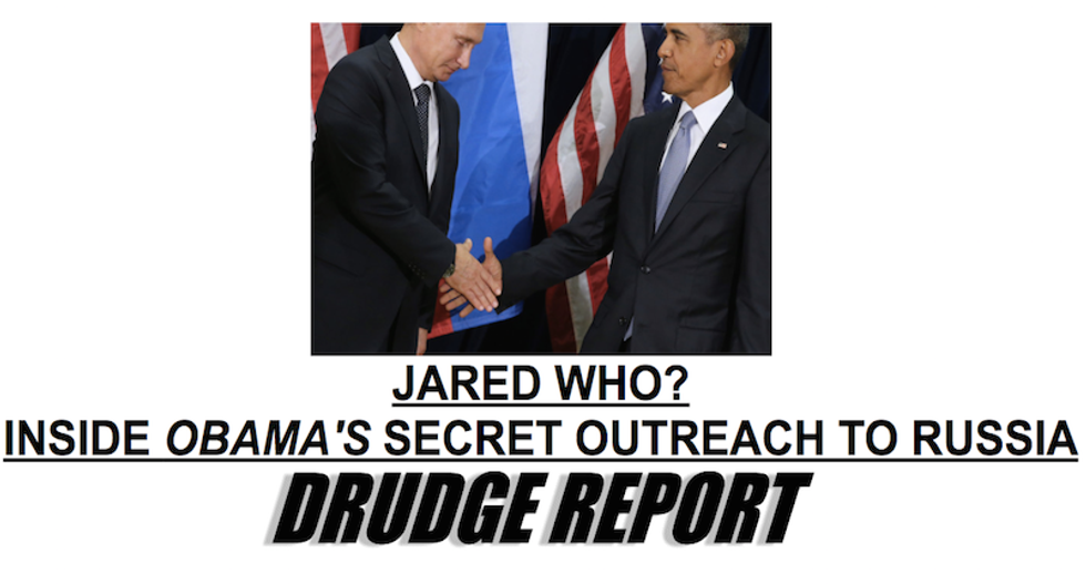 The Drudge Report news aggregation site posted a link to the two-and-a-half-year-old story Monday morning, with the headline "Jared who? Inside Obama's secret outreach to Russia," and it soon became the top story on the site with above the masthead banner placement.