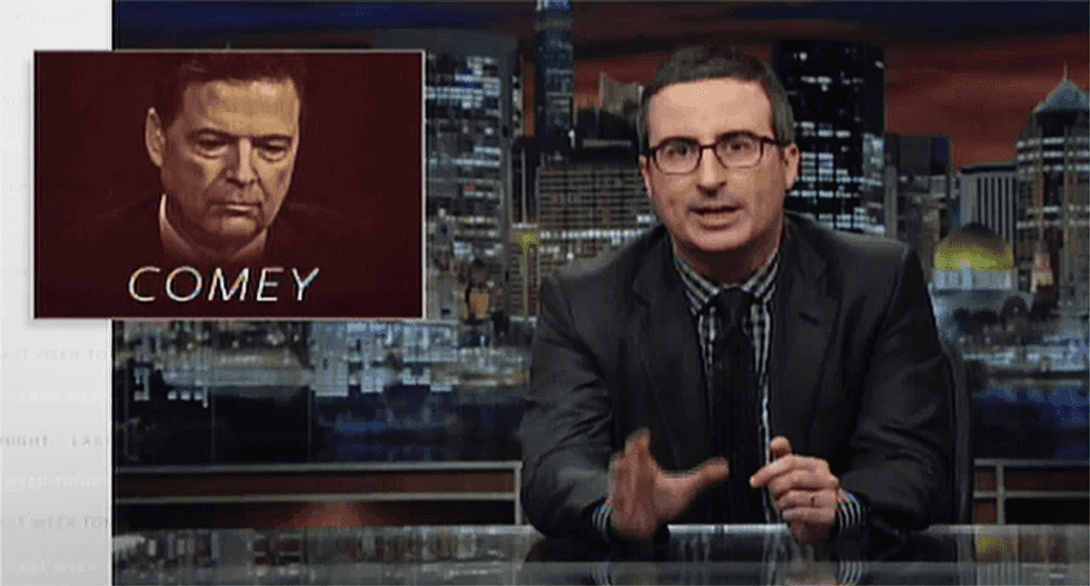 "What are you doing?" Oliver wondered. "'I was thinking of the Russia investigation when I fired Comey' is the one thing that you are not supposed to say out loud. It's the kind of thing that makes you want to ask three questions. One, can he really be this stupid? Two, does he really think that we as a country are this stupid? Three, are we as a country really this stupid?"