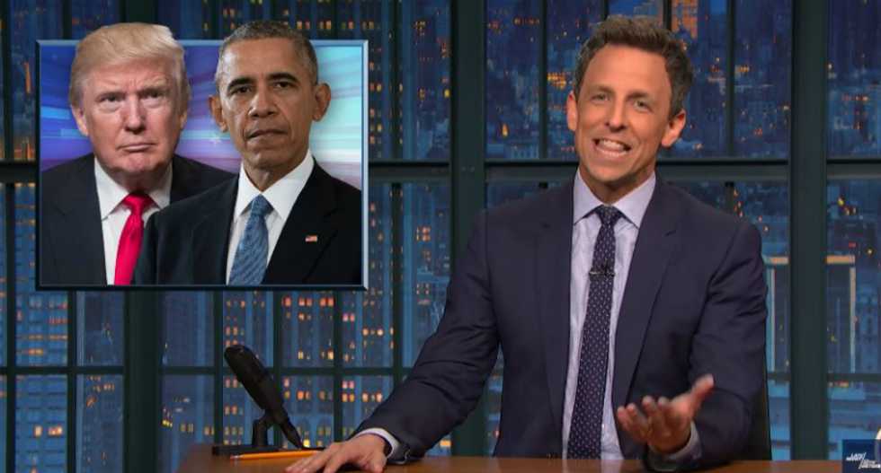 Keeping up with the Yates-Flynn news of the day, Late Night's Seth Meyers did an excellent impression of President Donald Trump believing former President Barack Obama was joking about his dangerous hiring of Michael Flynn.