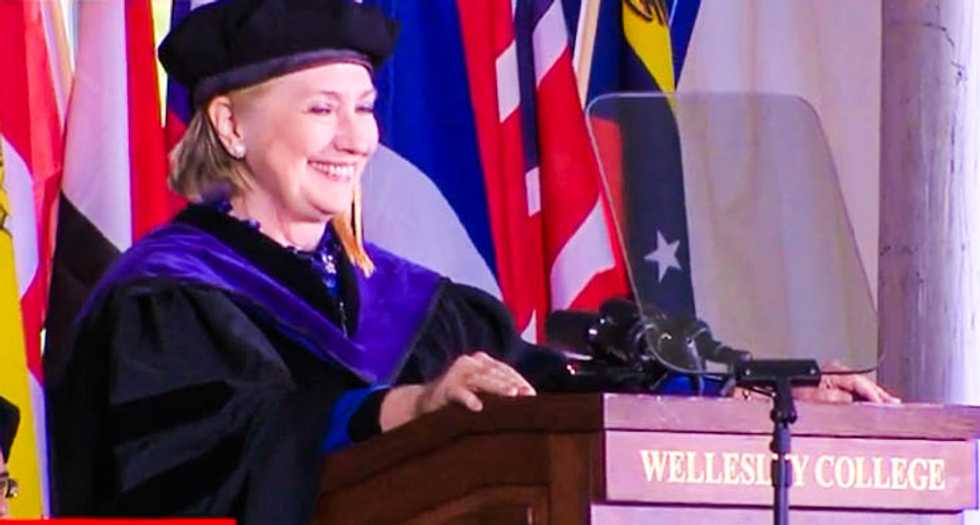Hillary Clinton surfaced at her alma mater of Wellesley College on Friday to deliver a commencement address that drew enthusiastic applause for its not-so-subtle digs at President Donald Trump.