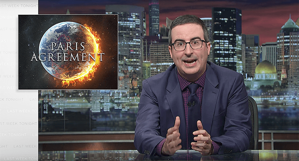 John Oliver was disgusted by President Donald Trump's decision to pull out of the Paris Climate Accord last week. After a touching tribute to the U.K. following the recent London Bridge terrorist attacks, Oliver blasted Trump for a "flamboyantly deceptive" speech withdrawing from the accord.