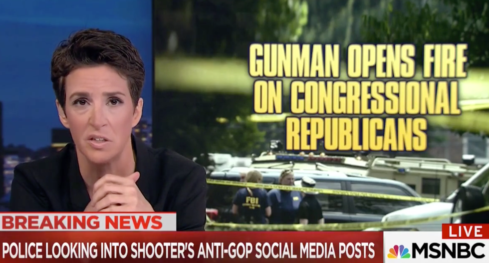 Discussing the horrific events the unfolded Wednesday morning, Maddow tracked the shooter’s online social media presence, which hits at a disgruntled political observer with a deep-seated hatred towards Republicans—though law enforcement stresses it does not yet have a clear motive for the rampage.