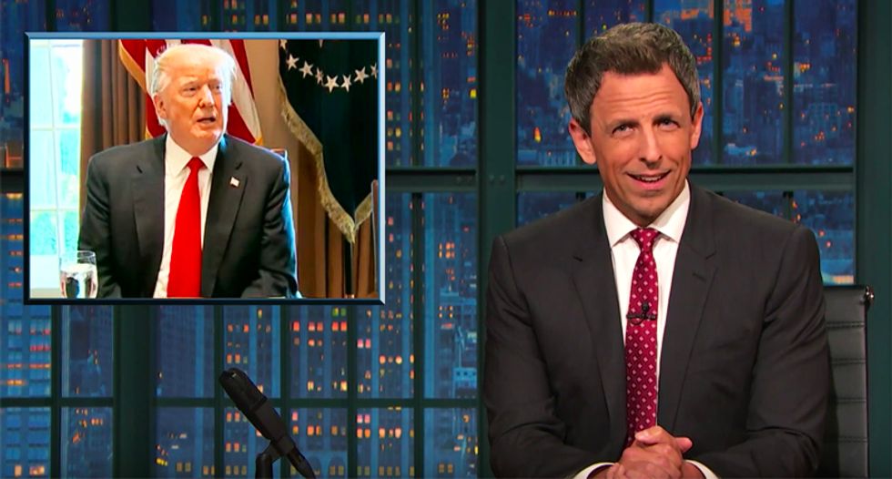 Tuesday night, "Late Night" host Seth Meyers got in his regular jabs at President Donald Trump while reminding his audience that he wakes up every day saying, "Really?" when he remembers who the president of the U.S. is.