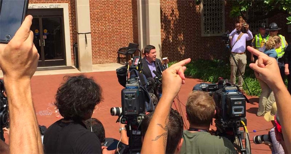 Protesters chased Jason Kessler away from his own press conference in Charlottesville. Here's my view: https://t.co/fTXctHgzsi— Blake Montgomery (@Blake Montgomery)1502648206.0