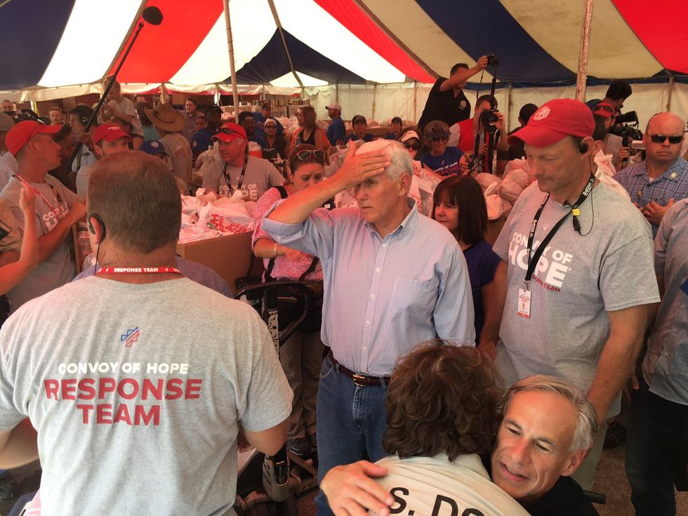 Whereas Pence hugged and prayed with Houstonians affected by Harvey, Trump appeared more to put on a "campaign rally."