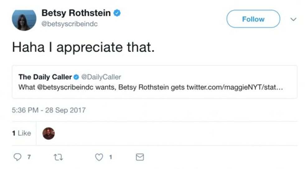 UPDATE: The Daily Caller has deleted the video from the site as well as their YouTube page. Raw Story downloaded the video and we have uploaded it along with the original screen captures of the video on the Daily Caller's YouTube page. The Daily Caller responded saying, "What @Betsyscirbeindc wants, Betsy Rothstein gets." That tweet has not yet been deleted. Rothstein is a former editor from FishbowlDC who joined the Daily Caller in 2013. She replied to the tweet saying, "Haha I appreciate that."