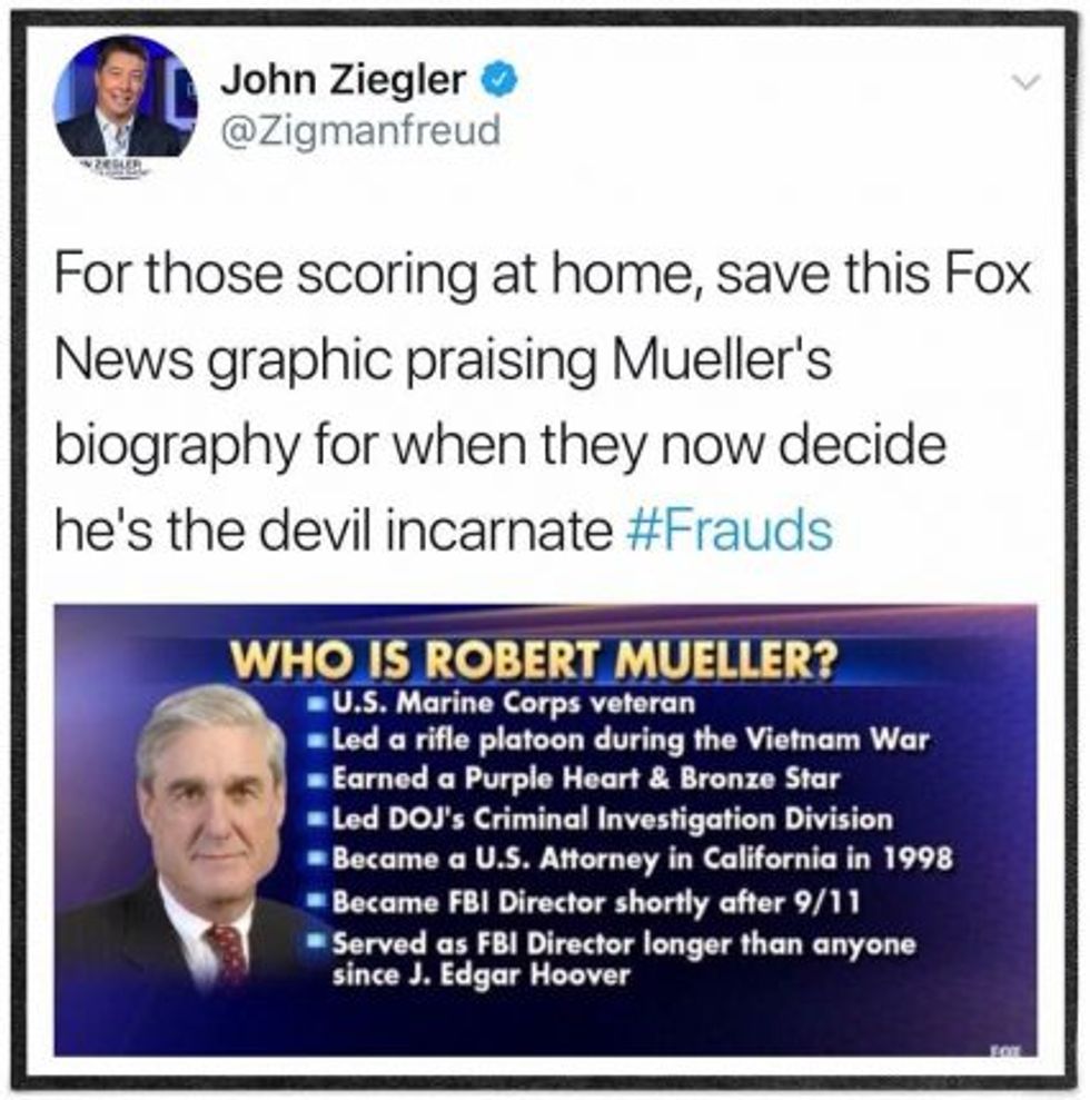 In the past, Fox News touted Mueller's credibility. When he was appointed, the network listed key components to his background that made him an upstanding, fair and reasonable prosecutor. Recently, however, they've been calling for his firing.