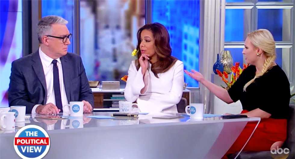 Appearing on The View to tout his new book, commentator Keith Olbermann skirmished with conservative Meghan McCain over whether President Donald Trump has been more damaging to the U.S. than Osama bin Laden.