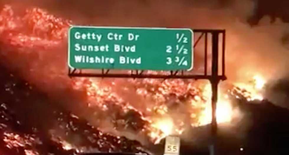 Fire burning along the 405