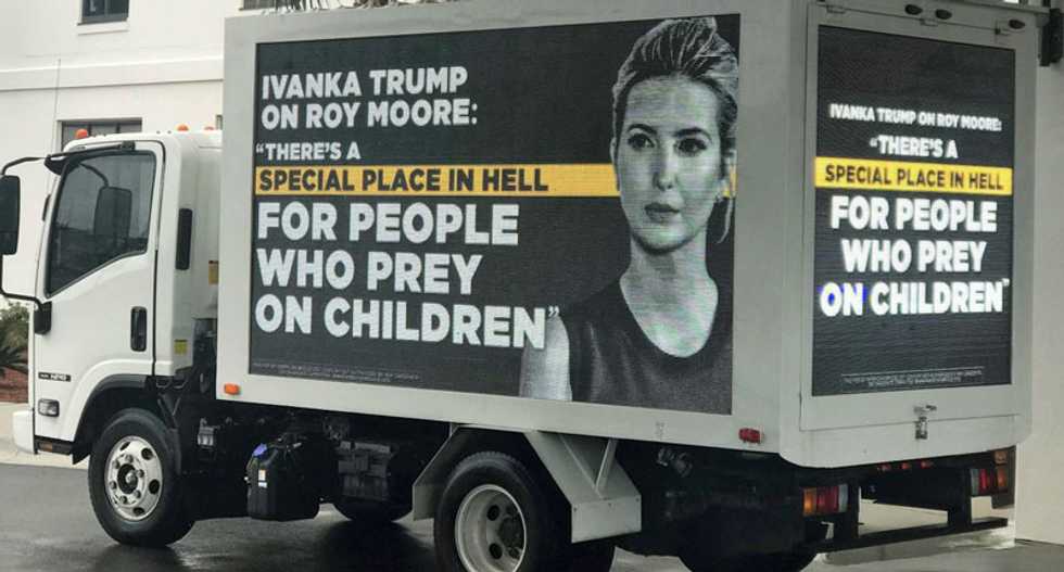 “Try as Trump and the Republican Party might, there’s no way to escape the truth about Roy Moore or Ivanka Trump’s own words,” said American Bridge spokesperson Allison Teixeira Sulier in a statement. “It’s a disgusting new low that the President, the RNC, and the rest of the Republican party are trying to help send a pedophile to the US Senate, and the American people won’t soon forget it.”