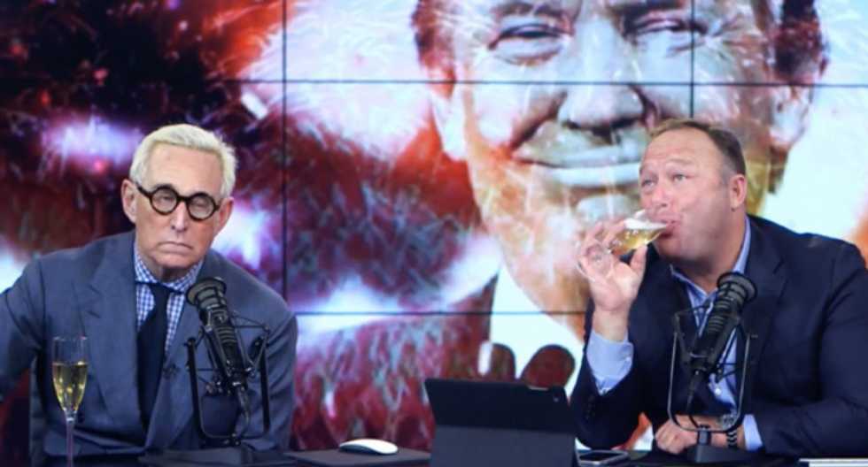 In his own version of "New Year's Rockin' Eve," Jones invited filmmaker and Donald Trump confidante Roger Stone onto his show.