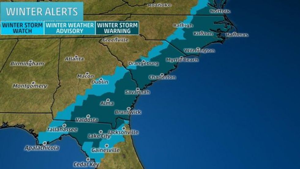 The National Weather Service has already posted a winter storm up the coast of Florida. It'll continue it's path up the east coast like a kind of frozen hurricane