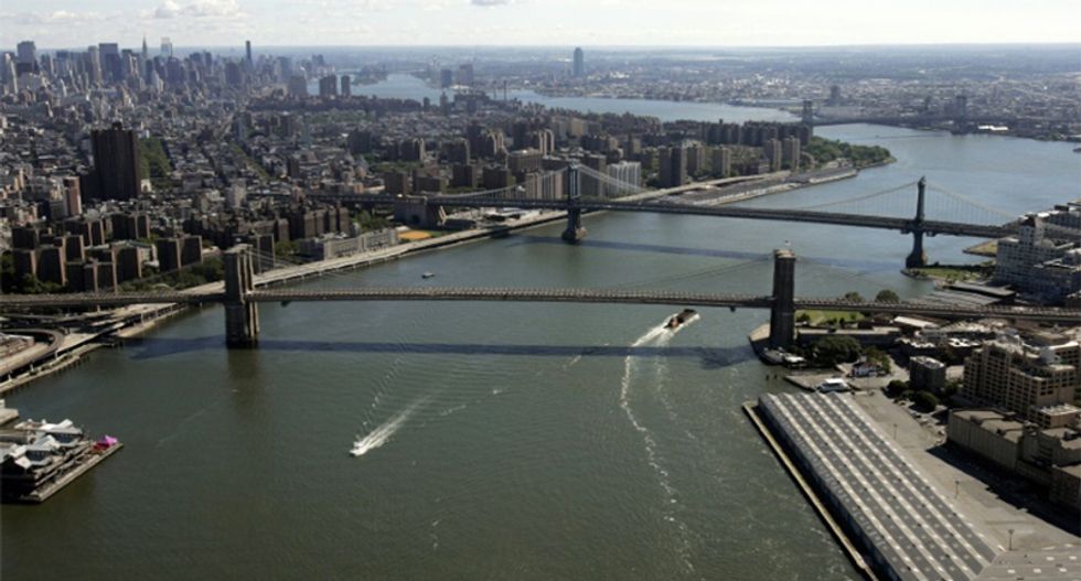 The red chopper, owned by tourism group Liberty and carrying six people including the pilot, fell into the river near the upscale Upper East Side neighborhood around 90th Street shortly after 7:00 pm (2300 GMT) at the end of a sunny day.