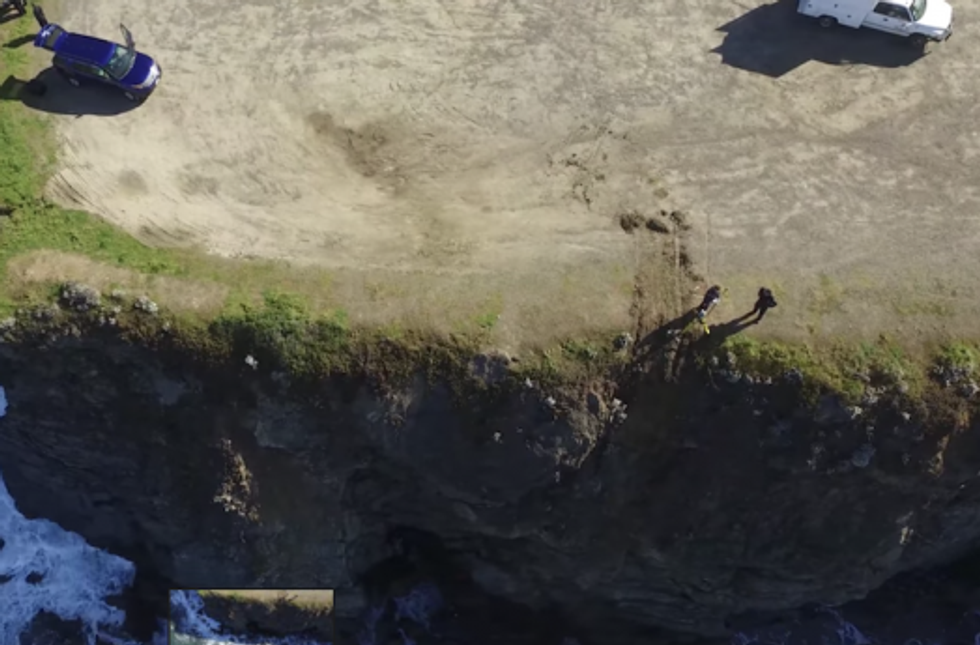 [caption id="attachment_1246700" align="alignnone" width="524"] The spot where the Hart family SUV flew off the cliff, from a drone video/Screenshot[/caption]