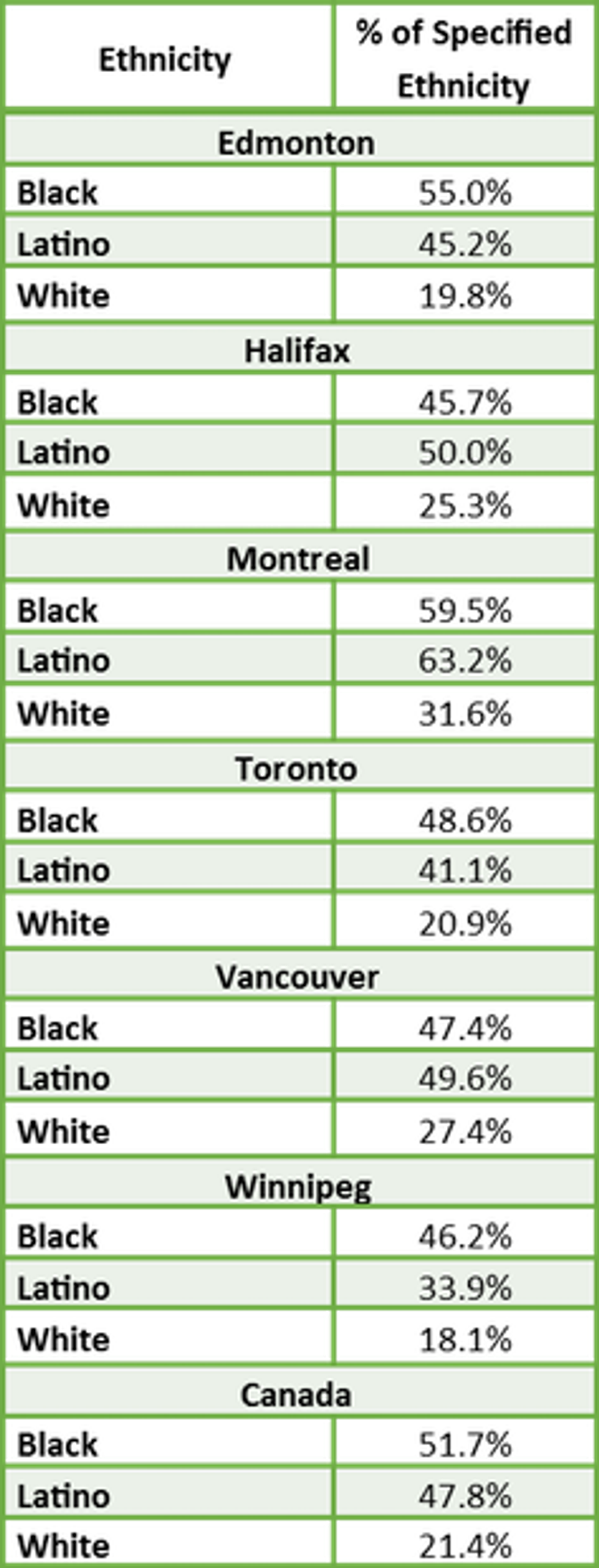 According to the same survey results, this racial disparity in home ownership is not unique to Calgary, but applies to most Canadians cities.