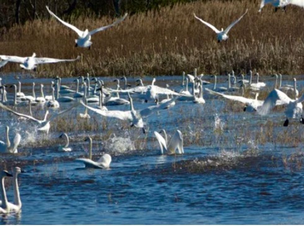 By Amanda Rodewald, Professor and Director of Conservation Science, Cornell Lab of Ornithology, Cornell University. Tundra swans, which nest in the Arctic and migrate south in fall, alight at Mattamuskeet National Wildlife Refuge in North Carolina.