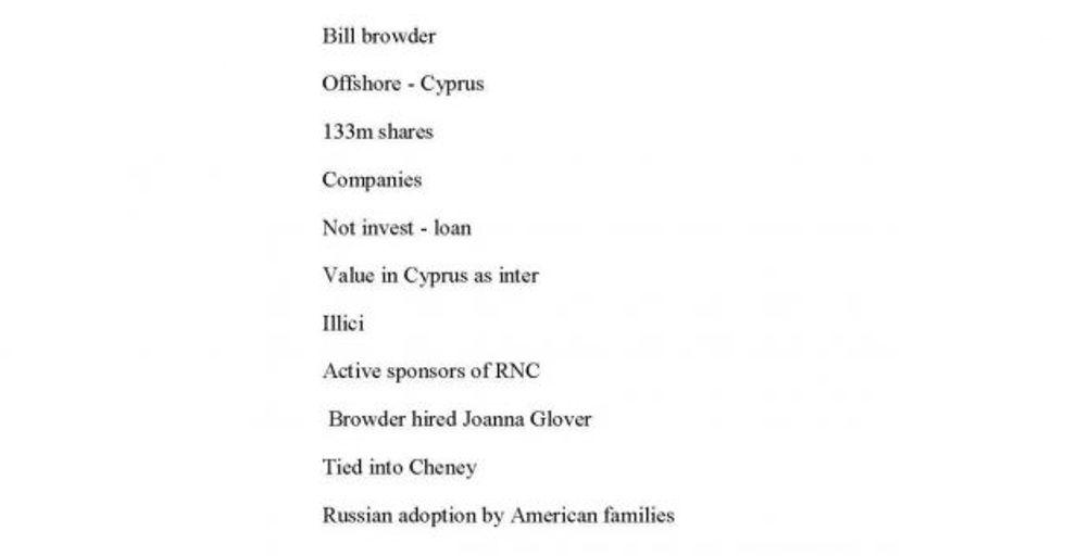 Cyprus has become notorious in recent years as a haven for turning a blind eye to money laundering operations conducted on its soil by Russian oligarchs -- why was Manafort writing about it in a meeting that was supposedly about Russian adoption policies?