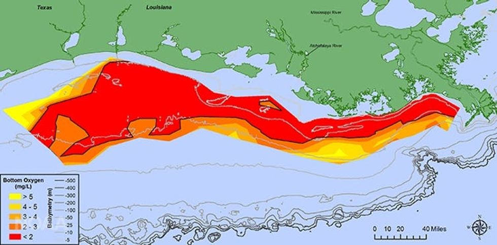 A massive dead zone forms in the Gulf of Mexico every year, fed by farm runoff that washes down the Mississippi River.