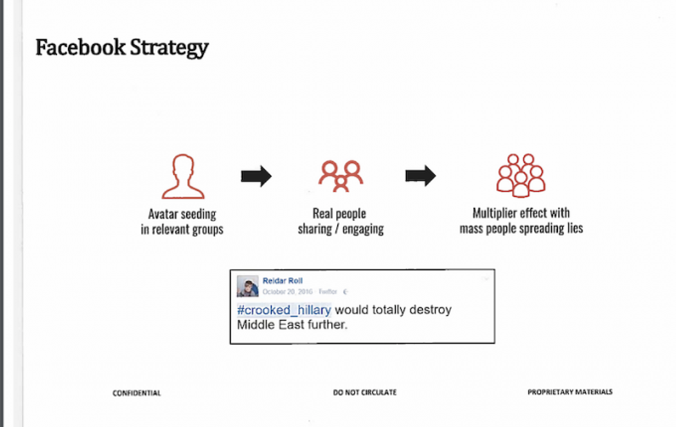 The presentation was uploaded and featured pages on making fake news sites, using "avatar seeding" to get fake news in front of groups and infiltrating opposition to seed discord, such as using a pro-Bernie Sanders Facebook group to radicalize supporters against Hillary Clinton.