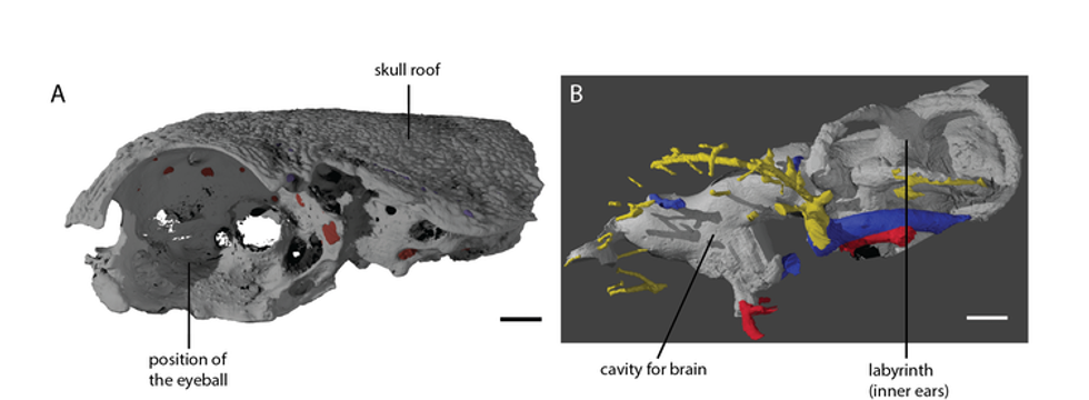 The 3D anatomy of the fossilised Ligulalepis skull reveals previously unknown details of the pattern of dermal skull bones, the shape of the brain cavity, and other soft tissue features (such as nerves and blood vessels) in this species.