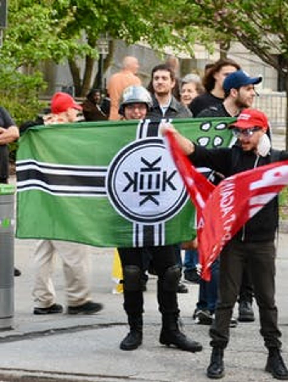 Trump supporter on May 1, 2017 in New York with a flag of Kekistan.