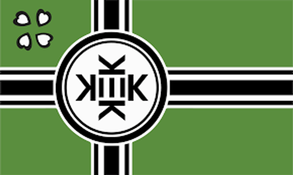 The flag of Kekistan, linked to far-right ideas.