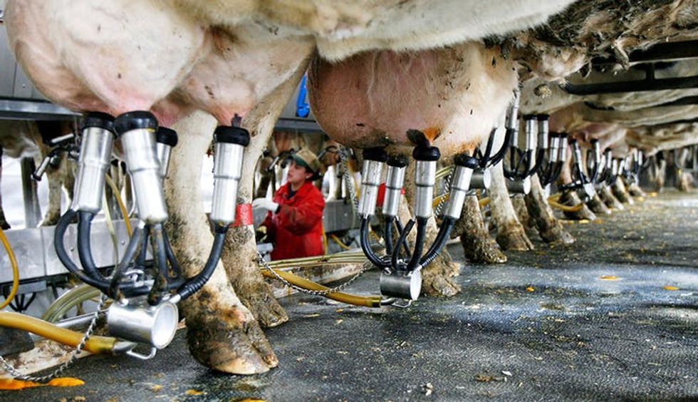 A study commissioned by the dairy industry suggested that if federal labor and immigration policies reduced the number of foreign-born workers by 50 percent, more than 3,500 dairy farms would close, leading to a big drop in milk production and a spike in prices of about 30 percent. Total elimination of immigrant labor would increase milk prices by 90 percent.