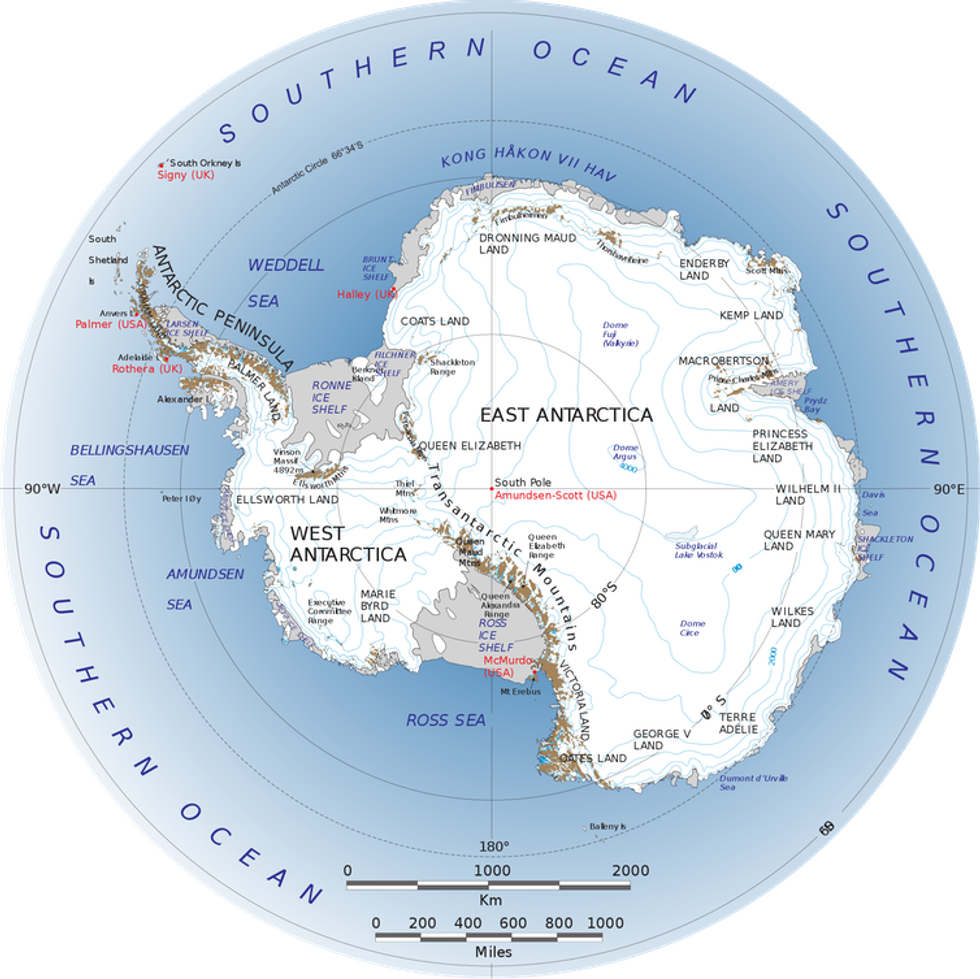 The gargantuan East Antarctic Ice Sheet is very thick (up to 4,800 meters, or nearly three miles), high, cold, and its base is overwhelmingly above sea level. The smaller West Antarctic Ice Sheet is thinner, warmer and, importantly, occupies a rough bowl-like topography, with its deepest interior points plunging to more than 2,800 meters, or 1.7 miles, below sea level.