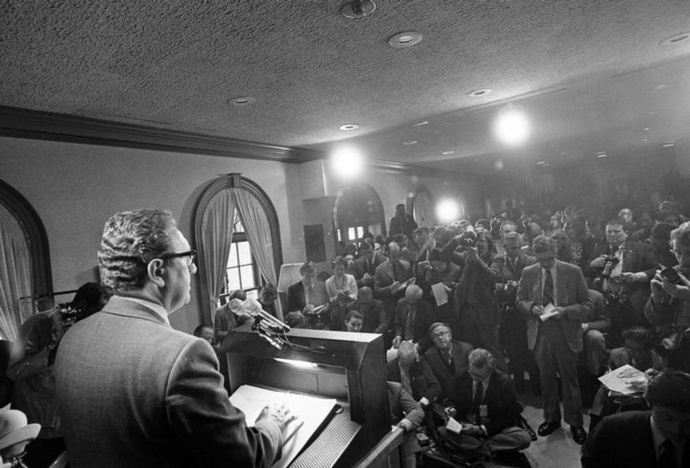 Kissinger tells a White House news conference ‘peace is at hand’ on Oct. 26, 1972 – a statement that came to be known as the ‘October surprise.’