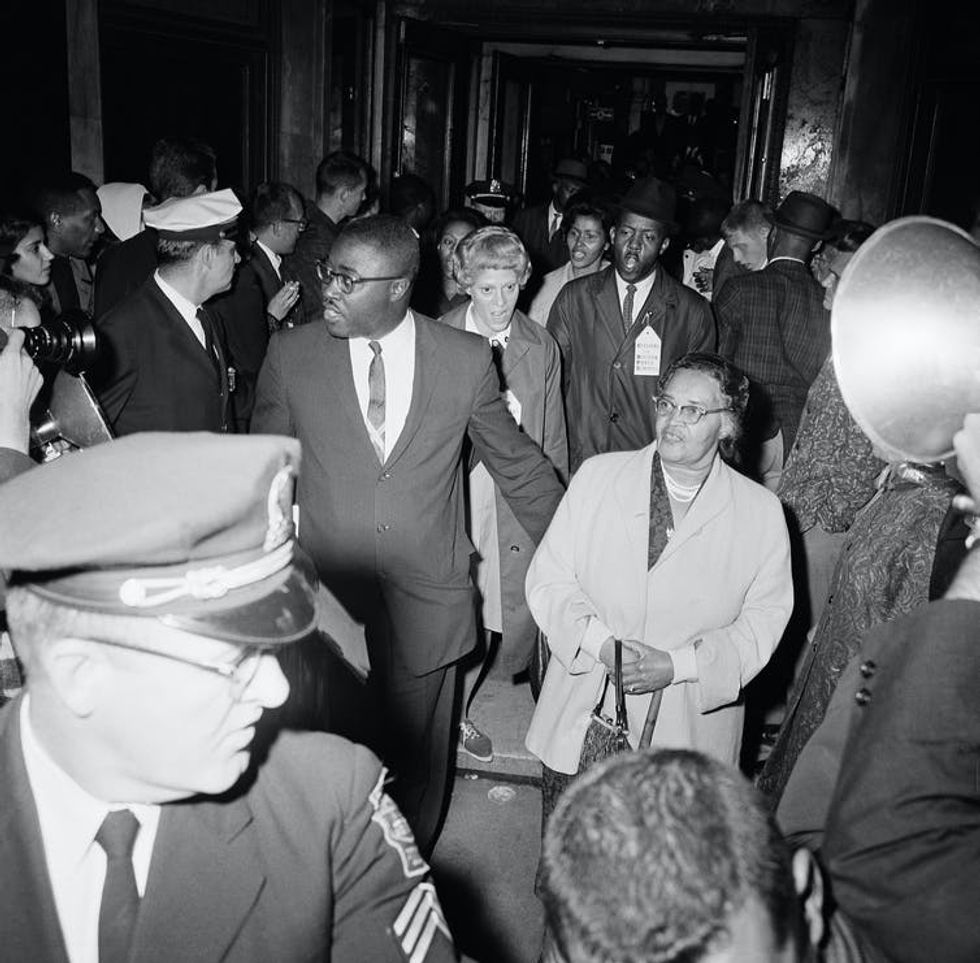 Forty-five NAACP members leave headquarters of Boston’s school committee on Sept. 7, 1963, after staging a sit-in protesting segregation in Boston schools.
