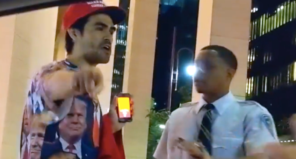 Carl Pacheco wore a "Make America Great Again" hat and a T-shirt covered front and back with images of President Donald Trump outside Kathy Griffin's show Monday night at Houston's Jones Hall when he got into an argument with a woman, reported OutSmart Magazine.