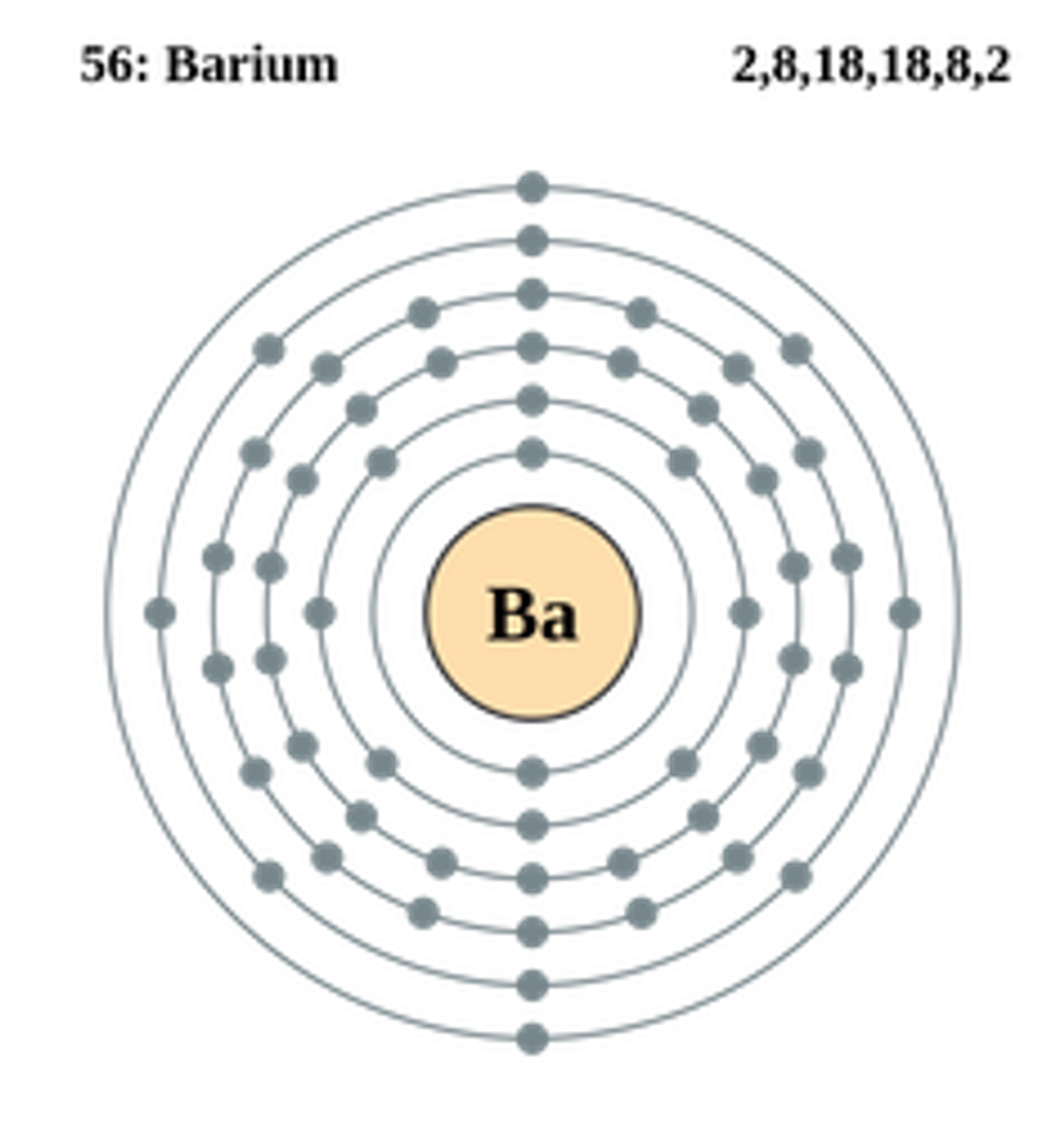 An electron diagram of a barium element, the last element before the lanthanide rare earth elements.
