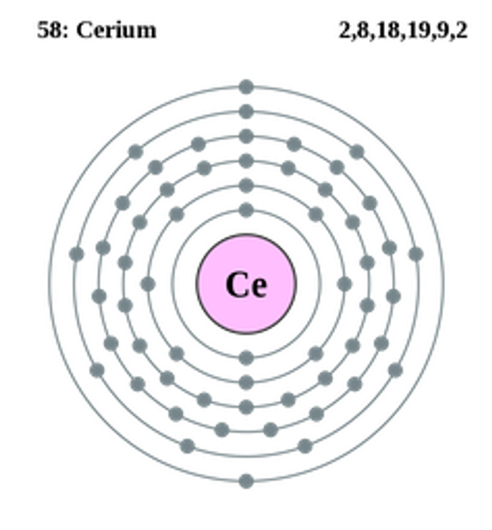 Cerium has one more electron in its fifth orbital and one more in its fourth than barium.