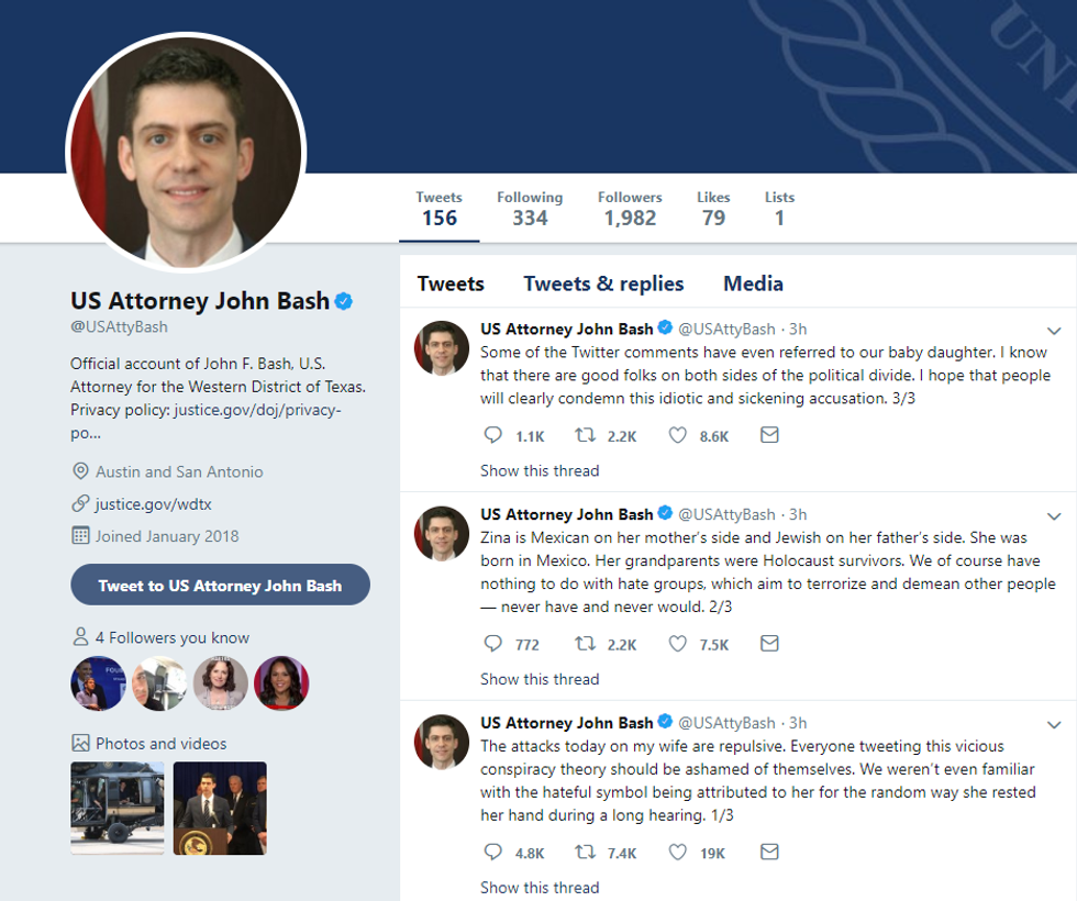 “Everyone tweeting this vicious conspiracy theory should be ashamed of themselves,” John Bash wrote.