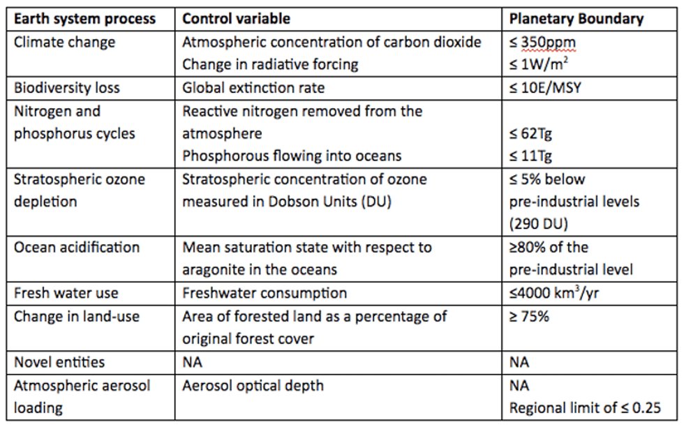 The planetary boundaries, developed in 2009, are a set of non-negotiable global limits for factors such as temperature, water use, species extinctions and other environmental variables. These aim to quantify how far we can push the planet before threatening our very survival.