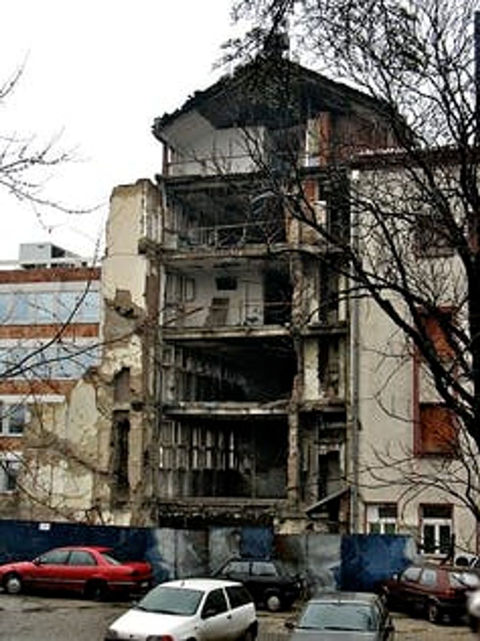 Ruins of the RTS in Belgrade which was bombed by NATO aircraft in 1999.