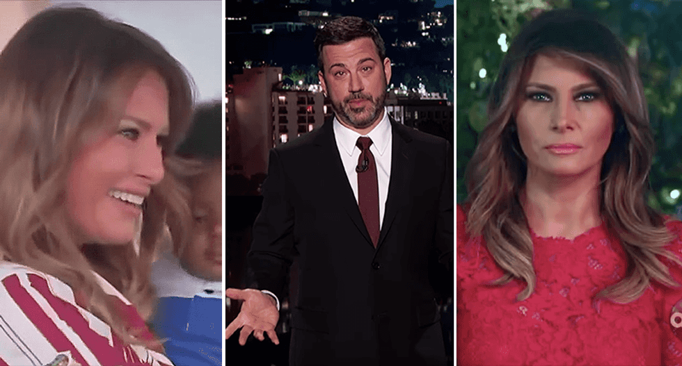 "Melania Trump is back in D.C. after a trip to Africa. You know when Melania's out of the country the acting first lady is Sean Hannity?" Kimmel began.