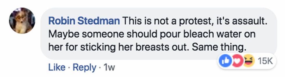 "The key to a possible answer is found in the reactions the video has been able to spur," EU vs Disinfo explained. "In the comments section on Facebook, users express outrage against the alleged feminist activist, often in strongly misogynic language, with this comment as the most popular, gathering by now more than 14,000 likes:"